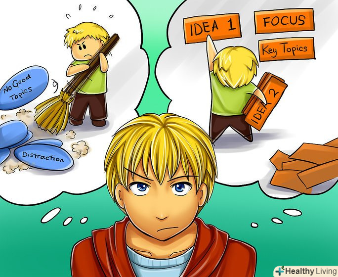Упорядкуйте думки у вашій голові.ви повинні зробити це до того, як ви будете їх озвучувати. Якщо ви захоплені певною темою, ви будете невпинно говорити про неї, не вибудувавши в голові якоїсь послідовності.- Добре на практиці діє вибір трьох головних моментів, на яких буде будуватися ваша комунікація. Таким чином, якщо ви втратили нитку розмови, то зможете без проблем в будь-який момент повернутися до одного з пунктів. Також можна записати ці пункти (якщо це можливо в даній ситуації).