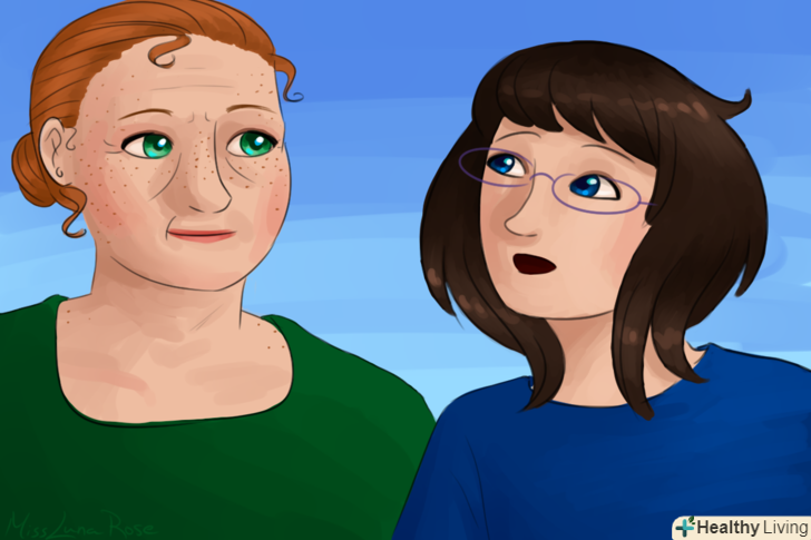Почніть розмову.розповідати про хвороби на кшталт тривожного розладу нелегко. Людина може боятися осуду рідних або думати, що вони відчують незручність і не будуть знати, як реагувати. Краще все-таки розповісти про проблему, незважаючи на непередбачувану реакцію. Скажіть мамі з татом, братам, сестрам або іншим родичам, що вам потрібно поговорити.[2]- Швидше за все, вони вже здогадалися, що з вами щось не так. Можливо, вони бажають допомогти, але не знають, в чому проблема. Серйозна розмова допоможе їм підтримати вас найкращим чином.