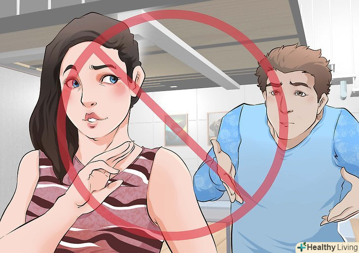 Не відповідайте співрозмовнику занадто поспішно.якщо ви захопитеся емоційною розмовою, то легко можете дати волю власним почуттям. Це підвищує ризик сказати щось таке, що ранить почуття іншої людини. Шанси сказати те, про що ви потім пошкодуєте, в подібній ситуації стають досить високими.[13]- Якщо ви відчуваєте, що починаєте розпалюватися під час розмови, зробіть глибокий вдих, перш ніж відповідати, і порахуйте про себе до п'яти.