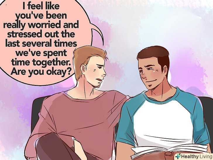 Спонукайте свого друга звернутися за професійною допомогою для боротьби з тривожним розладом.багато людей з тривожним розладом відчувають себе погано через нездатність контролювати свої переживання, що, як не парадоксально, веде до ще більшої тривоги. Вони можуть думати, що звернення за лікарською допомогою є проявом слабкості або доказом їх "ненормальності". Підбадьорте друга нагадуванням про те, що звернення за допомогою насправді є ознакою сили і турботою про себе.[24]- Коли обговорюєте з другом його тривожність, користуйтеся займенником "я". Не погіршуйте його стан фразами такого змісту: "ти повинен впоратися з тривожністю."Замість цього спробуйте сказати щось підбадьорливе і добре:" я помітив, що останнім часом ти багато переживаєш і знаходишся в напрузі. У тебе все в порядке?"