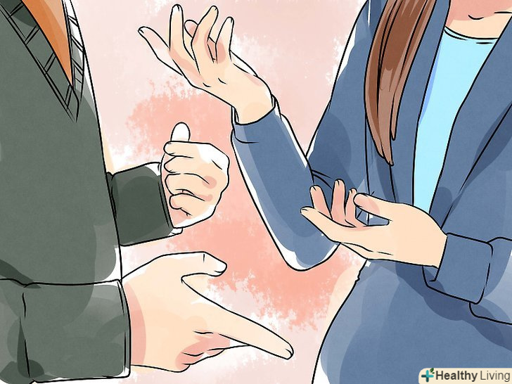 Обережно підносите свої думки.самі ваші фрази є не єдиним важливим фактором. При цьому настільки ж важливі тон і подаються вами невербальні сигнали. [11] Крики і підкидання рук в якості визнання своєї поразки можуть лише посилити атмосферу негативу в приміщенні, замість того щоб ефективно з нею боротися.- Спокійний зоровий контакт і легкі кивки головою під час промови вашого друга (якщо ви з ним згодні) є відмінним способом внесення позитивних нот в спілкування.