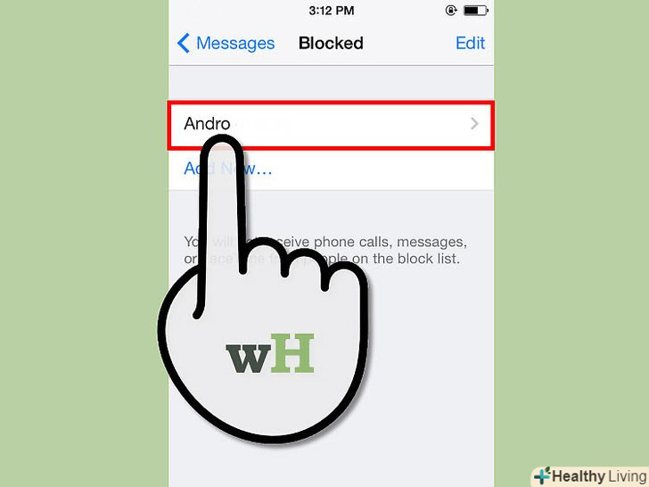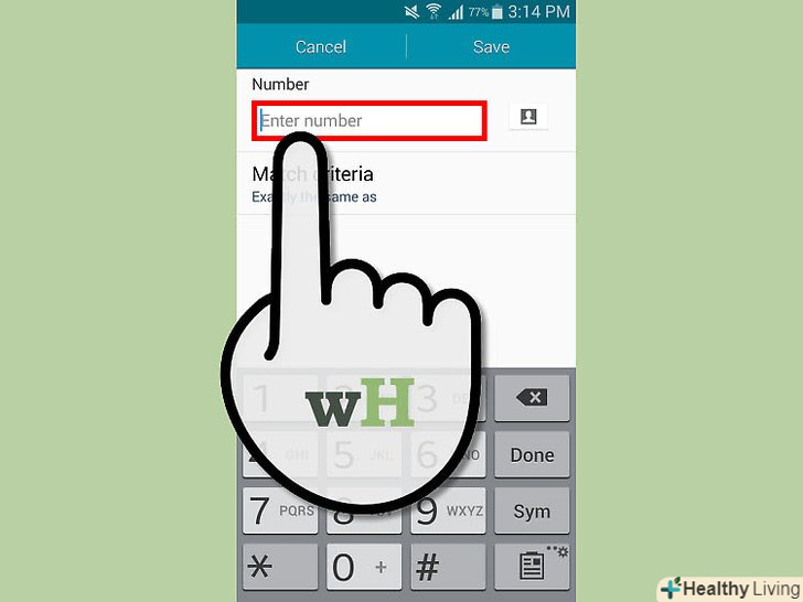 Введіть номер, який хочете заблокувати. ви можете зробити це вручну або клацнути по номеру в списку ваших контактів (якщо номер внесений в цей список).[8]
