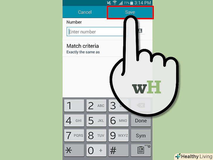 Збережіть внесені зміни. Номер повинен бути заблокований.[14]- Не всі бездротові оператори мобільного зв'язку надають можливість блокувати номери або блокувати їх безкоштовно. Якщо ви не можете знайти відповідний розділ, зверніться до вашого оператора зв'язку, щоб дізнатися про платні послуги.