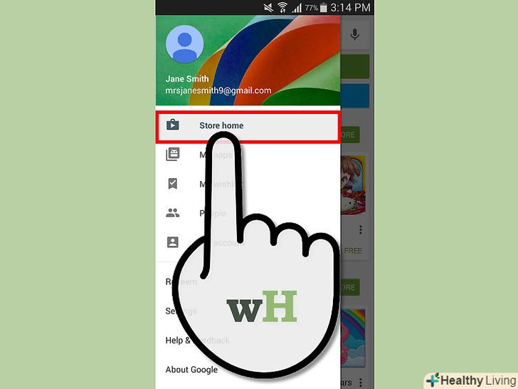 Запустіть Google Play Маркет.якщо ви опинилися в розділі "Музика", вийдіть з нього. Для цього клацніть по значку у вигляді трьох горизонтальних ліній в лівому верхньому кутку екрану.[9]