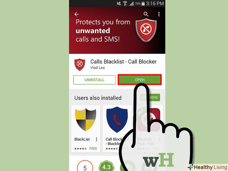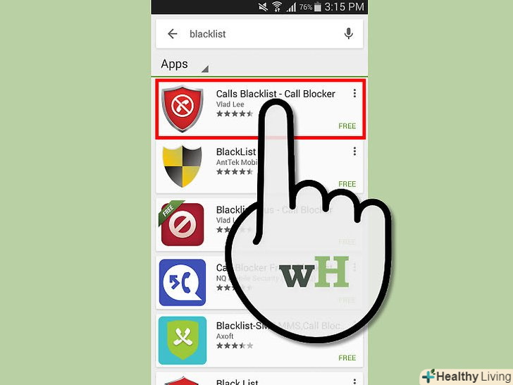 Перейдіть на домашню сторінку Google Play Маркет.потім клацніть по значку пошуку в правому верхньому куті екрану. У рядку пошуку введіть "чорний список" (Calls Blacklist) і клацніть по значку пошуку (поруч з рядком пошуку). Відобразиться список знайдених додатків.[10]