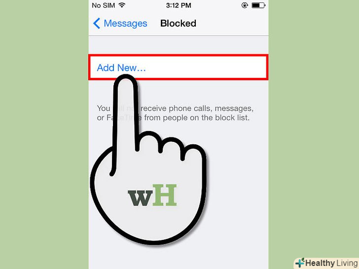 Натисніть "Додати" (у нижній правій стороні екрана). ви більше не будете отримувати повідомлень з цього номера.- Повторіть описані вище дії для додавання номерів іншими способами (з журналу викликів, з журналу повідомлень, вручну).