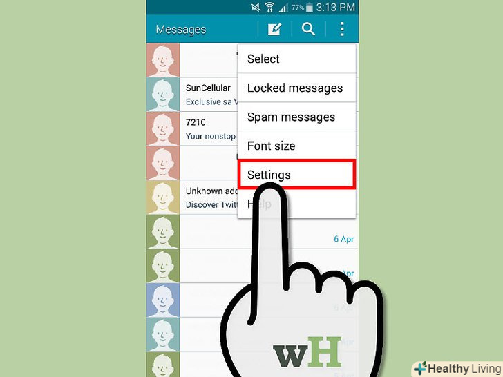 Натисніть "параметри" або "налаштування", або "налаштування блокування спаму" (назва опції залежить від оператора зв'язку).[13]