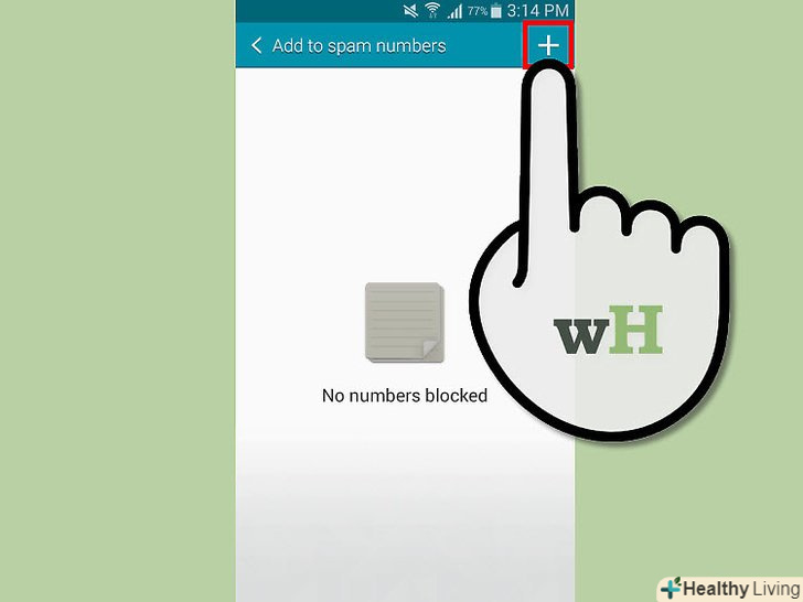 Клацніть по значку плюс ( + ) (в білому гуртку на синьому тлі), щоб додати номери, які ви хочете заблокувати.- Ви можете додати номер вручну, зі списку контактів, журналу викликів або журналу повідомлень.