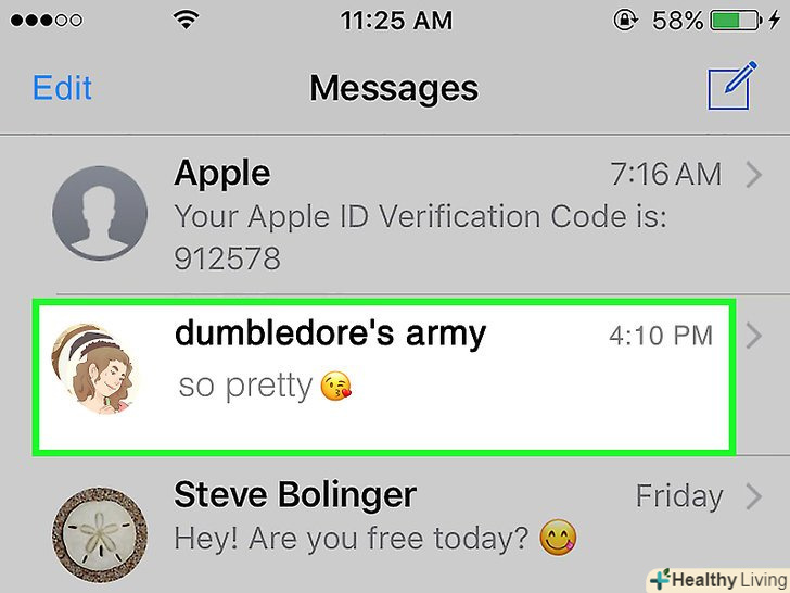 Відкрийте вкладку з повідомленнями в додатку, де ведеться листування.Прокрутіть список повідомлень, поки не знайдете групову переписку, яку хочете покинути.[11]- Пошукайте імена людей в групі або назву групи. Можливо, творець чату дав йому назву, виходячи зі змісту.