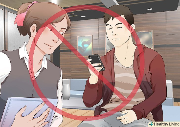 Вивчайте етикет.встановлені правила етикету або передбачуваної ввічливості залежать від того, з ким Ви розмовляєте. У переважній більшості ситуацій можна керуватися світським етикетом. Хоча сама ідея "світського етикету" пов'язана із застарілою вікторіанською епохою, багато правил дійшли без змін до наших днів. Якщо ви не впевнені, як вчинити, то краще дотримуватися традицій, ніж порушувати їх. Сьогодні ввічливість не менш важлива, ніж тоді, а сам етикет доповнений безліччю нових правил.[7]- При розмові з людиною не потрібно постійно відволікатися на свій телефон.