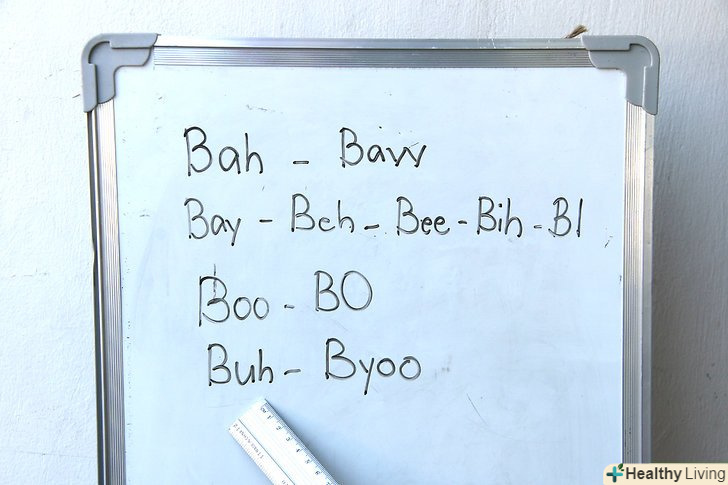 Дотримуйтесь прикладу. "ба Бо бе Бі БУ Бо Ба" і повторюйте його з усіма приголосними звуками. Це допомагає вашому артикуляційному апарату звикнути формувати виразні пари приголосних і голосних звуків.