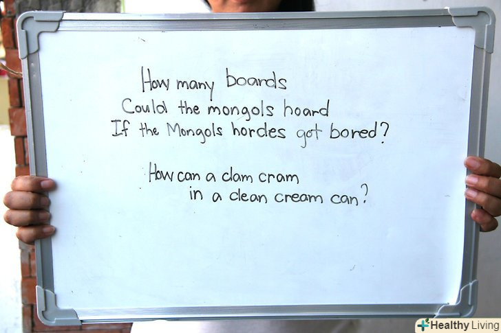 Візьміть ручку, олівець або різновид маленької палички, закусіть зубами і спробуйте вимовляти різні мовні вправи – скоромовки, Крок 3 ітд.змушуючи свою мову працювати більше звичайного і розробляючи фізичні м'язи, що беруть участь в мові, ви вдосконалюєте дикцію в нормальних умовах, коли на шляху відтворення звуків немає ніякої перешкоди.