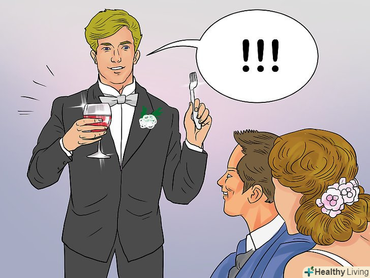 Попросіть гостей звернути на вас увагу.люди можуть вести себе досить шумно, тому, можливо, вам доведеться кілька разів стукнути виделкою по келиху з вином і почекати поки гості притихнуть. Так як почнете ви з того, що представите себе, дуже важливо, щоб люди почули хто ж ви і ким доводитеся нареченому. Скажіть що-небудь типу: "пані та панове, можна хвилиночку Вашої уваги."- Залежно від того як проходить святкування, можливо, хтось вже встиг представити вас і вам можна буде пропустити цю частину. Але все ж будьте готові заздалегідь, якщо вам дадуть мікрофон, коли гості практично не звертають на вас увагу.