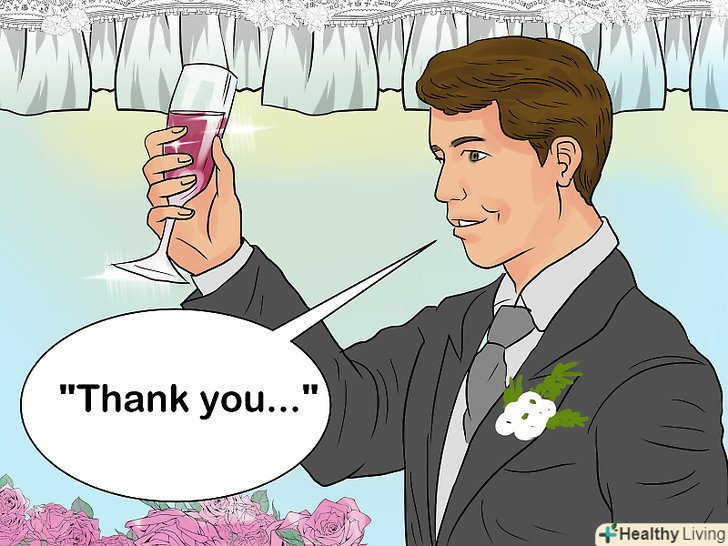 Подякуйте батькам і гостям.віддайте данину традиції і подякуйте людей, які оплатили весілля, як правило, батьків нареченої. Не Дякуйте їм конкретно за" оплату " торжества, а за те, що вони зробили його можливим. Ви можете сказати наскільки добре вдалося святкування, і як всі чудово проводять час. Так ненав'язливо можна подякувати батькам нареченої. Але не забувайте, що в наш час все дуже швидко змінюється, і витрати за весілля батьки молодят могли розділити, тому не забудьте подякувати всім, хто допомагав з організацією торжества.- Також дуже люб'язно з Вашого боку подякувати всім гостям за їх присутність.