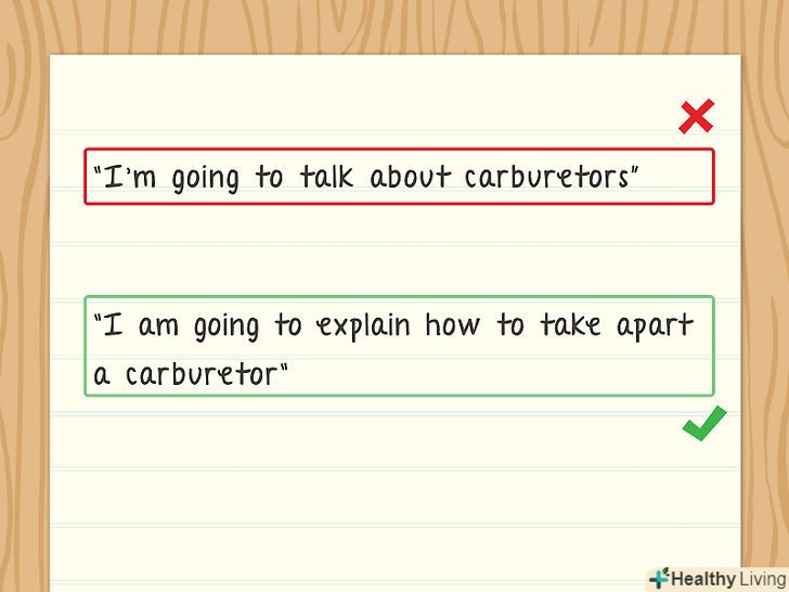 Сформуйте чітке уявлення про процес або концепцію.вивчіть питання вздовж і впоперек, щоб ясно і лаконічно донести інформацію до слухачів. Крім дослідження також можна обговорити тему з друзями і родичами.[4]- Наприклад, мова зачіпає питання вирощування розсади з насіння. Поясніть весь процес другу або родичу крок за кроком. Запитайте, наскільки ваші слова були зрозумілими.