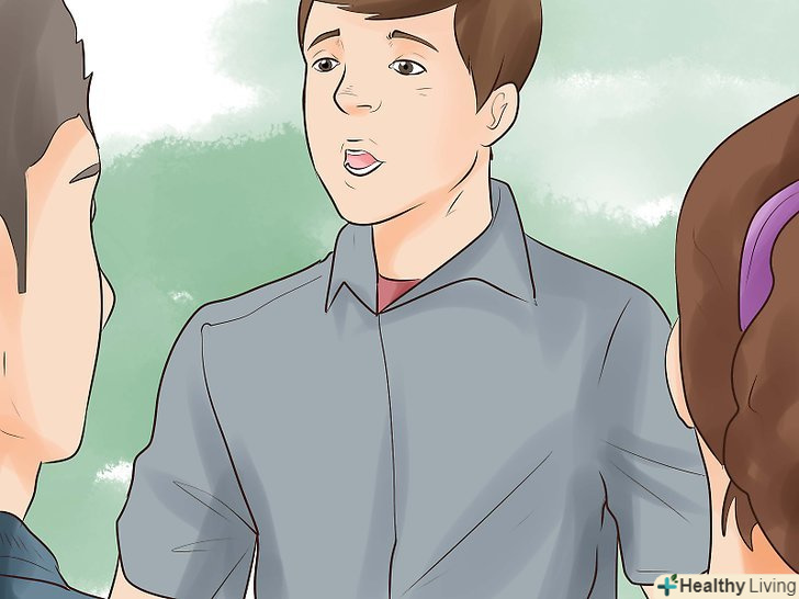 Не чекайте паузи в розмові.іноді розмова в групі схожа на вулицю з жвавим рухом: ви чекаєте просвіт в потоці машин, щоб вклинитися в нього, але не можете дочекатися. Секрет в тому, що в груповій бесіді чекати своєї черги не варто (її можна взагалі не дочекатися), тому не соромтеся перебивати інших, щоб вступити в розмову.- Намагайтеся не перебивати людей, просто почавши викладати вашу думку. Спочатку скажіть щось на кшталт: "Почекай ...«або " я хочу сказати...", а потім дозвольте співрозмовнику домовити його думку. Так ви привернете увагу, не перебиваючи інших.