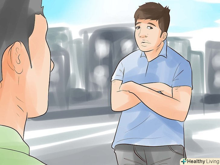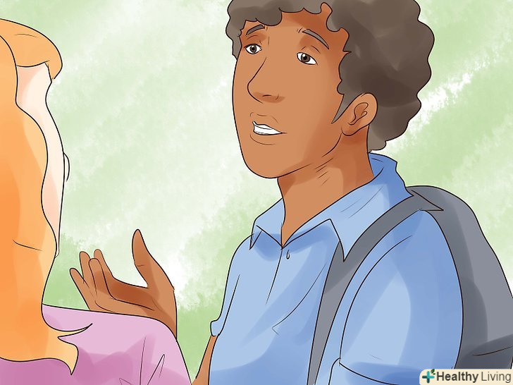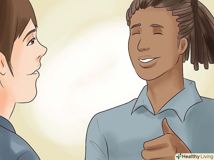 Посміхайтеся. Люди набагато охочіше розмовляють з тими, хто виглядає як відкрита і доброзичлива людина. Тому більше посміхайтеся і користуйтеся відкритою мовою тіла.- Ви не повинні виглядати як посміхається ідіот; просто дайте зрозуміти, що ви раді перебувати в цьому місці (навіть якщо це не так). Не хмурьте брови і не робіть кисле обличчя. Підніміть брови і підборіддя і посміхніться.
