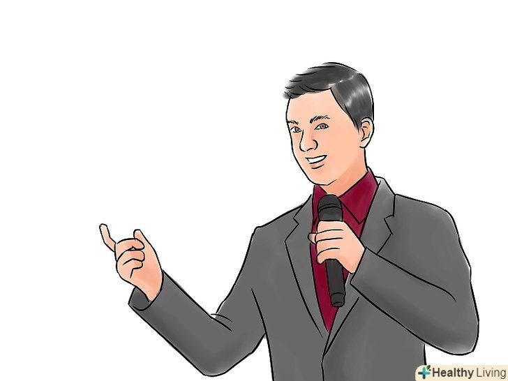 Експериментуйте з тоном голосу.в принципі, ви повинні говорити спокійно і чітко вимовляти кожне слово. Це як мінімум. Але в той же час ви повинні зробити так, щоб ваша мова не була монотонною, інакше ваша аудиторія просто засне. Якщо ви відчуваєте захват від якихось пасажів, не бійтеся робити на них акцент. Говоріть голосно і з ентузіазмом! Ви можете навіть грюкнути в долоні, якщо це необхідно. А потім ви знову почнете "співати колискову". Або декламувати частину мови, в якій необхідно робити паузи, щоб підкреслити її емоційне забарвлення. Повірте, таким нехитрим способом ви зможете зробити свою мову більш ефективною. Не бійтеся експериментувати. Досвід прийде в процесі.- Проявляйте емоції за допомогою тону свого голосу. Не бійтеся розсміятися, проявити смуток або розчарування. Ви-людина. Самий звичайний смертна людина. Ваші глядачі шукають простого людського спілкування, їм не потрібен бездушний робот, рівним голосом декламує слова, які не несуть за собою ніяких думок, переживань або емоцій.