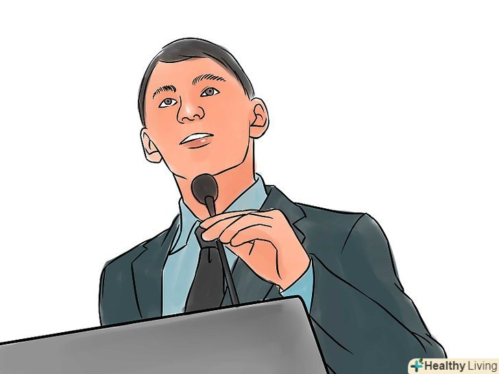 Завчіть мова на пам'ять.ну ладно, це не так вже необхідно, але більш ніж бажано. Просто якщо ви запам'ятаєте мова, то зможете тримати візуальний контакт з аудиторією, а не губитися в своїх записах, написаних часом далеко не ідеальним почерком. Важливість візуального контакту полягає в тому, що таким чином оратор закликає аудиторію до діалогу і налаштовує на довірчий лад. Але не варто надмірно хвилюватися, якщо перед виступом у вас залишилося мало часу на підготовку, тому що завчена на пам'ять мова – це всього лише перевага, а не правило.- Це не означає, що, вивчивши мову, ви повинні виходити на сцену без будь-яких підручних матеріалів. Звичайно ж, ви можете взяти з собою свої картки з тезами! І тоді, якщо ви щось забудете, зможете подивитися на них і, як ні в чому не бувало, продовжити мову. Саме заради цього ви з десяток разів проганяли мову з картками.