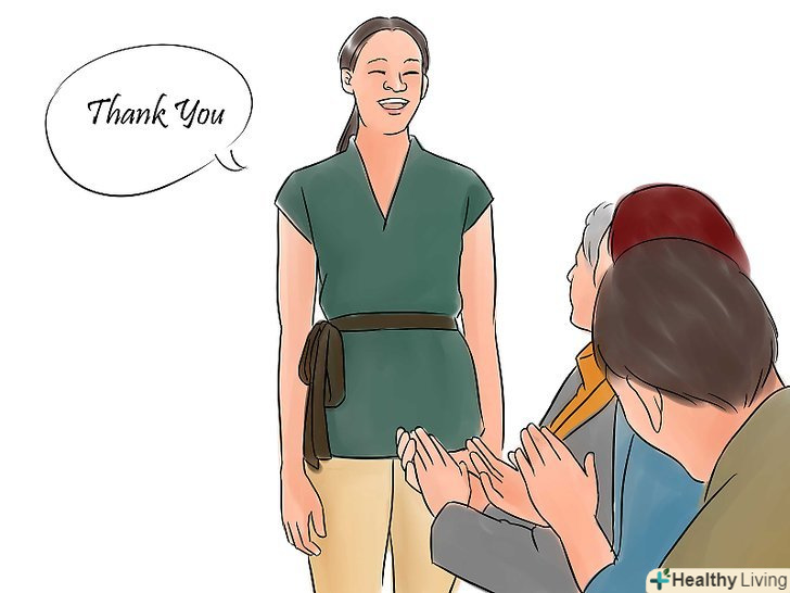 Закінчіть своєю ключовою фразою і скажіть «спасибі за увагу». ви продекламували мова, Ось бачите, це зовсім не смертельно. Так що саме час переходити до логічного її завершення. Окиньте поглядом аудиторію, подякуйте її за увагу, посміхніться і покиньте сцену.- Саме час зітхнути з полегшенням – ви це зробили. Наступного разу ви будете читати лекцію про тонкощі ораторського мистецтва. Що Вас нервувало минулого разу, не пригадайте?