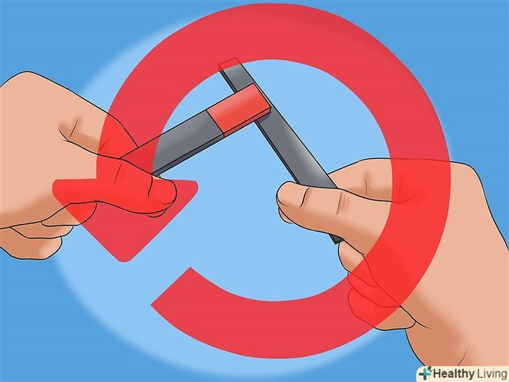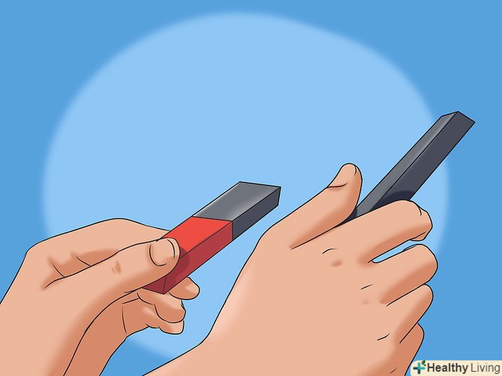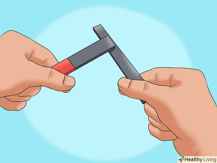 Покладіть сильний магніт біля шматка сталі (тільки певних сортів), і через дві хвилини сталь перетвориться в слабкий магніт, який втратить свій магнетизм протягом деякого (досить тривалого) часу.[1] цей метод ідеально підходить для намагнічування викруток, цвяхів, голок. Ви також можете використовувати його, щоб відновити магнетизм голки старого компаса або іншого слабкого магніту.[2]