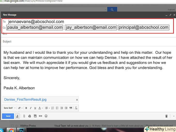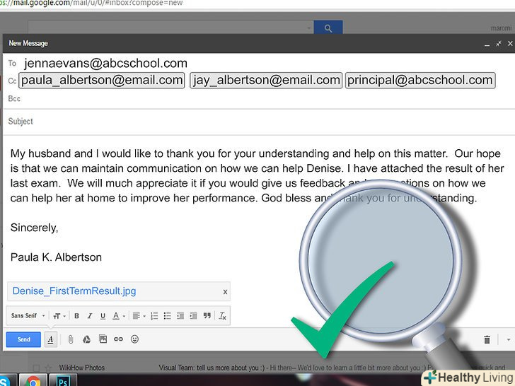 Вкажіть адресу.перед відправкою необхідно вказати електронну адресу вчителя. Уточніть всі деталі на сайті школи.- Надішліть копії всім зацікавленим сторонам на кшталт вашого чоловіка та інших вчителів.