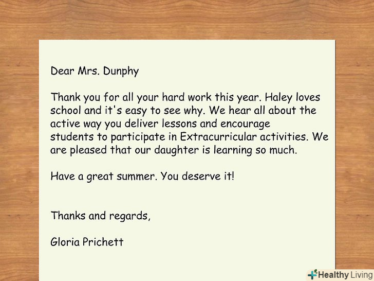 - Використовуйте ті ж елементи, що і в електронному листі. Текст повинен бути дуже коротким і лаконічним. Наприклад: "Шановна Яна Сергіївна! Мене звати Тетяна Шишкіна, Я мама Софії Шишкіної. Я хочу подякувати Вам за допомогу в ситуації з математикою. Софія відчувала деякі труднощі з новою темою. Я вдячна, що Ви знайшли час пояснити їй матеріал після занять. Повідомте, якщо я можу бути вам корисною. З повагою, Тетяна Шишкіна".
