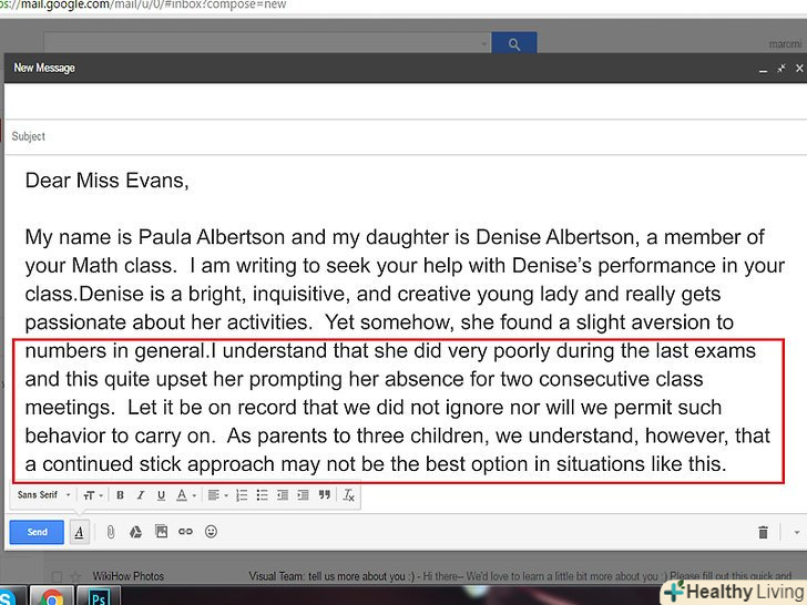 Підтримуйте позитивний тон.у чорновому варіанті стежте за тим, щоб використовувати лише позитивні слова. Батьки легко засмучуються, коли справа стосується дітей. Позитивна і попереджувальна позиція допоможе вам побудувати відкритий і продуктивний діалог.- Не використовуйте обвинувальні слова на адресу вчителя.