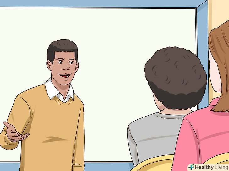 Беріть участь в обговоренні на уроці.участь в обговоренні на уроці-це відмінний спосіб показати, що вам цікавий матеріал уроку. Записуйте тези і питання, які безпосередньо відносяться до конкретного уроку або модулю, обговорюваного протягом навчального тижня. Згадуйте думку однокласників з повагою, незалежно від того, згодні ви з ними чи ні. Завдяки цьому ви покажете свій інтерес до обговорюваної теми уроку.[3]- Наприклад, можна сказати:»я згоден з точкою зору Андрія, що стосується глобального потепління, але я думаю, що необхідно докладати більше зусиль, щоб вирішити цю проблему".