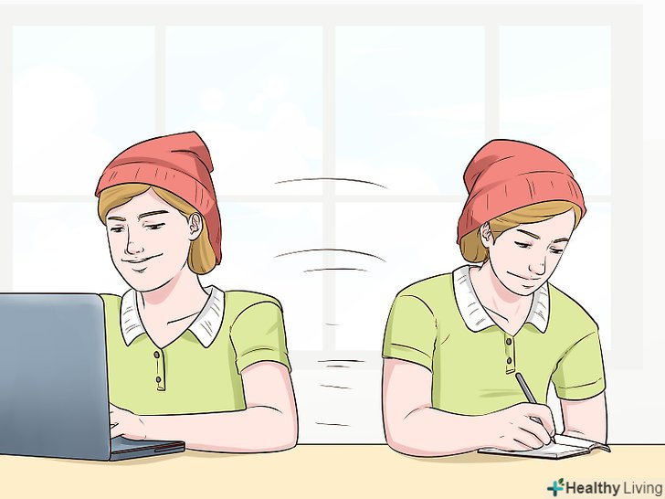 Чергуйте завдання, якщо вам складно зосередитися.якщо вам необхідно виконати кілька завдань з різних предметів, чергуйте їх виконання, якщо ви помічаєте, що вам складно зосередитися. Нова тема може допомогти оживити втомлений розум, завдяки чому ви не витратите дорогоцінний час даремно. Чергуйте завдання за своїм бажанням. Однак зробіть все можливе, щоб виконати їх до встановленого терміну.[6]- Спочатку займіться більш складними предметами, щоб Ви могли приділити їм більше часу, якщо це необхідно.