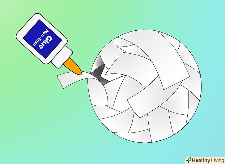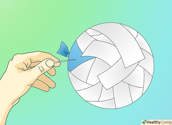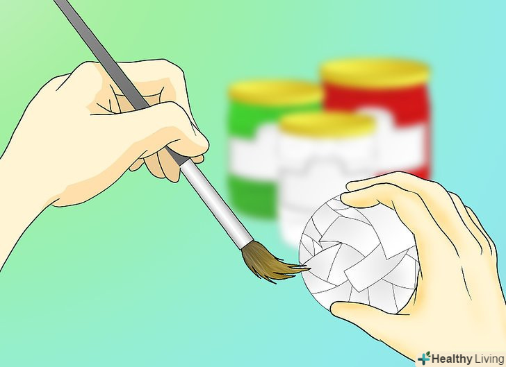 Обклейте кулі пап'є-маше.Обклейте кулі пап'є-маше так, щоб верхні частини кульок (де вони зав'язані) залишилися відкритими. Висушіть пап'є-маше, потім лопніть і приберіть кульки.