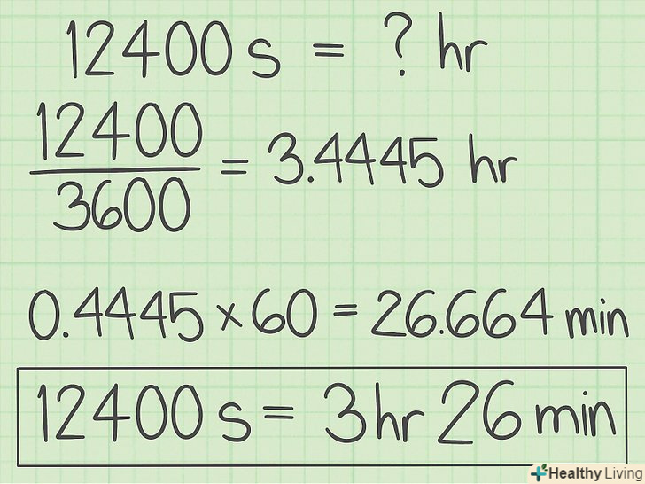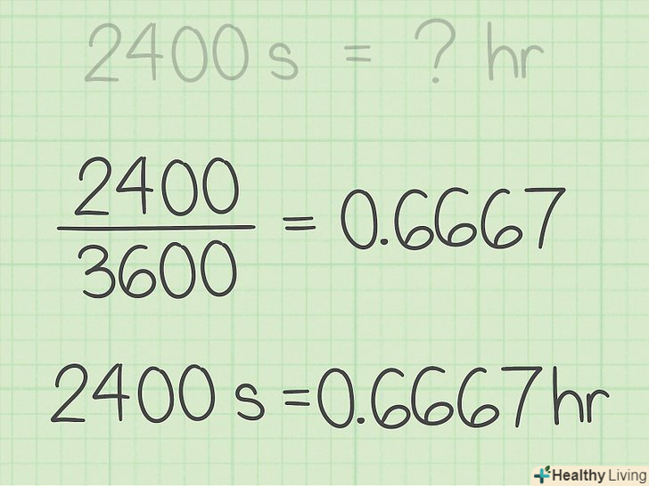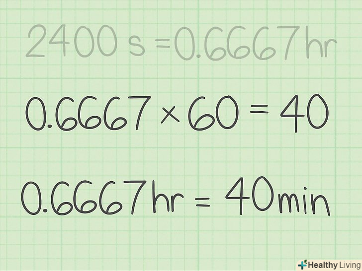 З'ясуйте, скільки секунд дано.швидше за все, кількість секунд буде відомо (наприклад, дано в завданні); також можна виміряти час і знайти кількість секунд самостійно.- Наприклад, потрібно перетворити 2400 секунд в годинник.