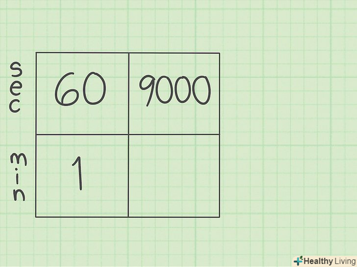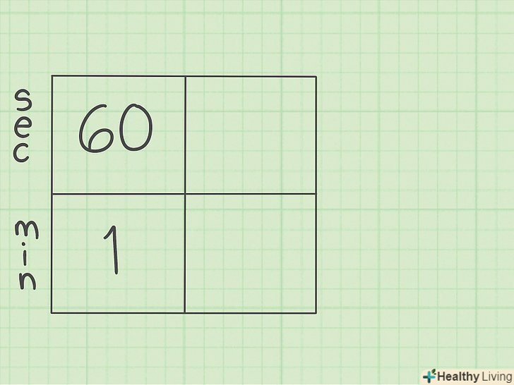У першому стовпці запишіть одиничну величину.одиничною величиною є величина зі знаменником 1.[3] у нашому випадку необхідно порівняти 1 хвилину з кількістю секунд. 1 хв = 60 С. Таким чином, одиничною величиною є. Щоб відобразити це в таблиці, в першому рядку і першому стовпці запишіть «60», а в другому рядку і першому стовпці запишіть «1».