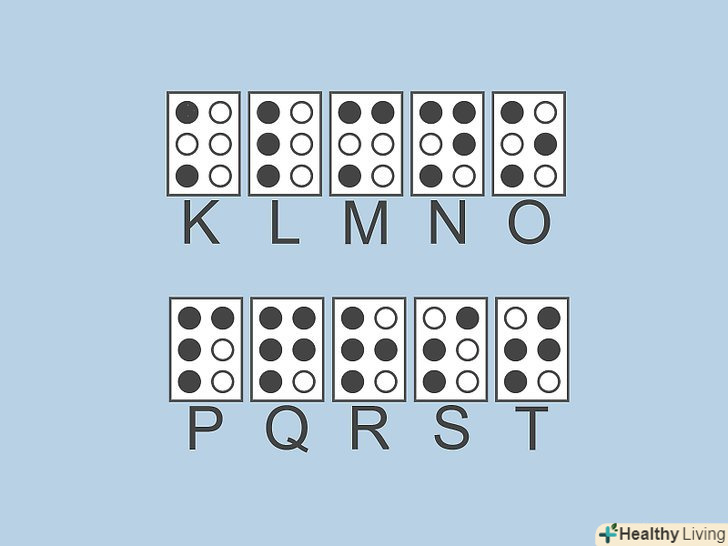 Вивчіть наступні 10 букв (K-T). вони аналогічні буквам від A до J з різницею, що в них також задіяна точка 3.