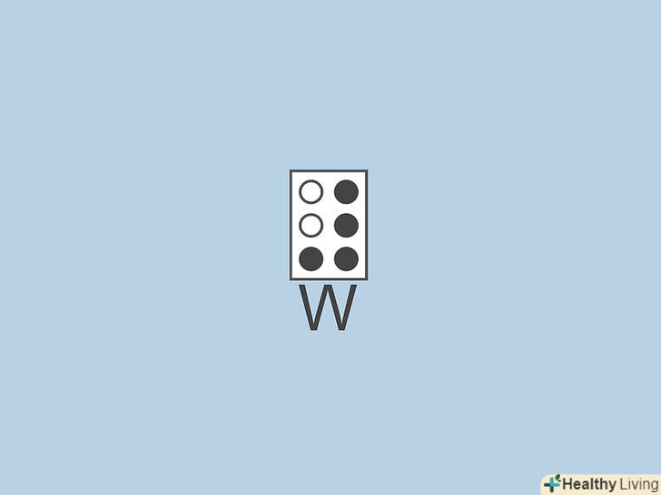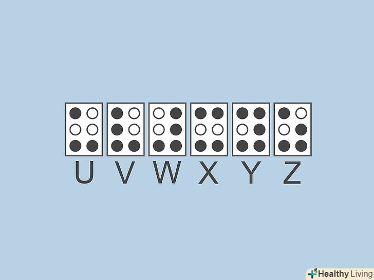 Вивчіть комірки для букв U, V, X, Y і Z. вони аналогічні буквам від A до E, але в них також задіяні точки 1, 3 і 6.