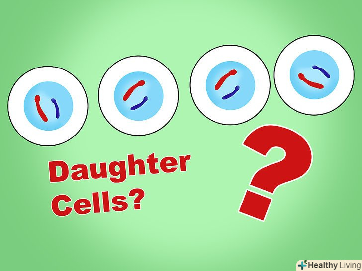 Підрахуємо кількість поділок.в процесі мітозу поділ відбувається тільки один раз. Клітини, що утворилися після поділу, називаються дочірніми. У нашому організмі більшість клітин ділиться саме таким чином, розщеплюючись на дві нові клітини.[2]- Підрахуйте кількість одержаних (дочірніх) клітин. У процесі мітозу з однієї клітини ви отримаєте тільки дві клітини.