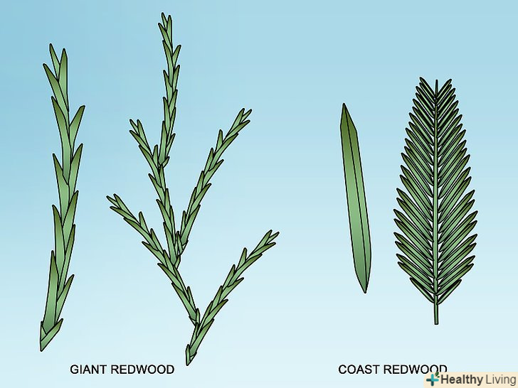 Вивчіть хвою червоного дерева.у вічнозеленого Каліфорнійського червоного дерева існує два види листя, в залежності від його різновиду. У секвої плоска, м'яка хвоя, на зразок Тиса. Для Секвоядендрона характерна досить коротка, гостра хвоя, яка розташована пучками на кожній гілці, як у кедра або ялівцю.
