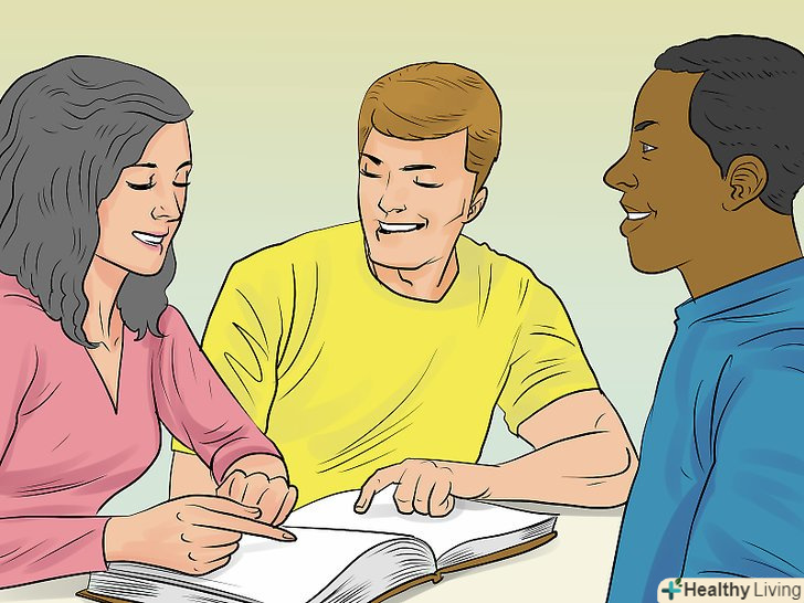 Спілкуйтеся з одногрупниками.спостерігайте за одногрупниками і подумайте, з ким з них ви могли б створити невелику компанію для обміну знаннями та обговорення матеріалу. У цей час ви можете попросити одногрупників пояснити вам щось, чого ви не зрозуміли.- До того ж, це відмінна можливість пояснити своїм одногрупникам матеріал, який ви добре засвоїли, таким чином, ви ще краще його запам'ятаєте.
