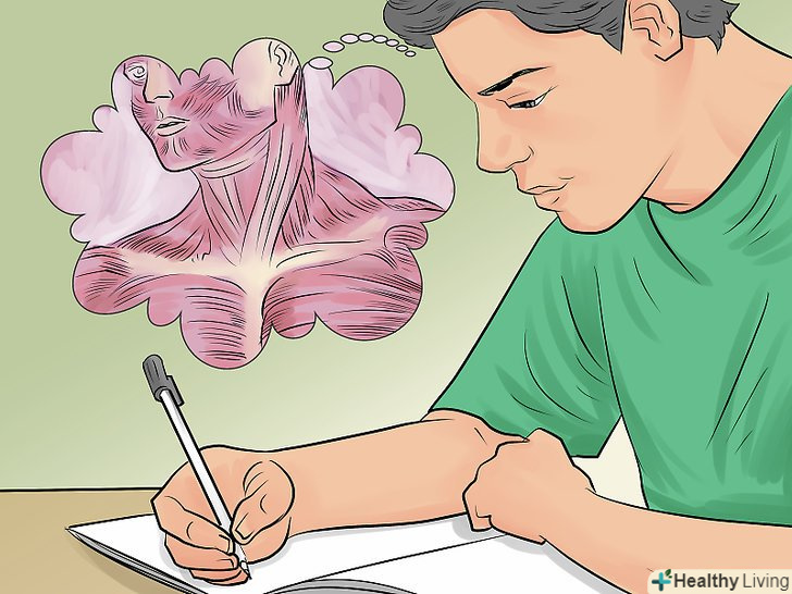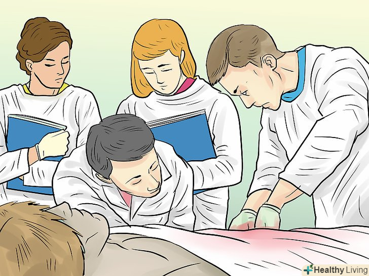 Навчіться препарувати.анатомія вивчає те, що знаходиться всередині організму. Якщо у вас є можливість спостерігати препарування або взяти в цьому участь, обов'язково скористайтеся цією можливістю. Постарайтеся якомога краще вивчити на трупі те, що Ви вчили за підручником.[6]- Обговоріть матеріал з вашими одногрупниками і уважно слухайте, чи не пропустили вони якихось деталей. Намагайтеся не пропускати препарування в лабораторії, навіть якщо вам не дозволяється в ньому брати участь. Повірте, практичний досвід дуже ефективний у вивченні.