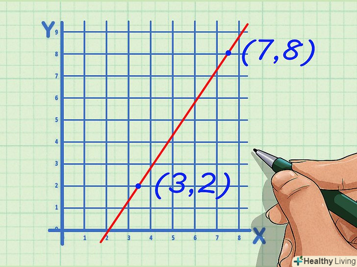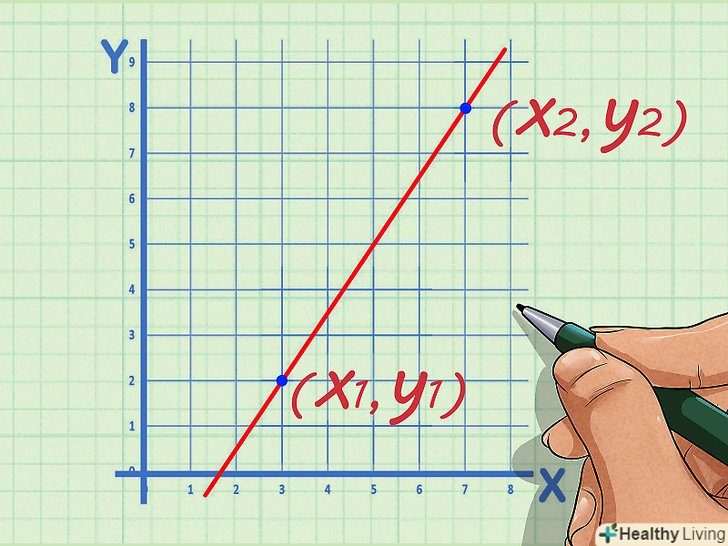 Виберіть дві точки і знайдіть їх координати. можна вибрати будь-які дві точки, що лежать на прямій.- Скористайтеся цим методом, якщо дані тільки координати двох точок (без графіка).