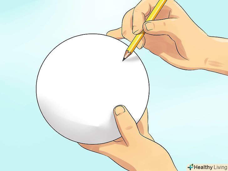 - Розріжте кулю навпіл зубною ниткою.помістіть кулю на стіл і натягніть нитку над центральною частиною сфери. Уявіть на моделі уявний екватор і тримайте нитку над цим місцем. Розріжте куля ниткою навпіл.[7]