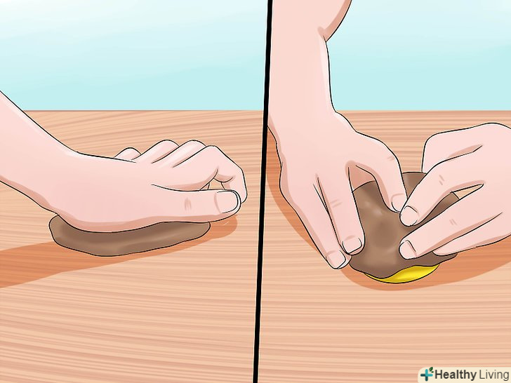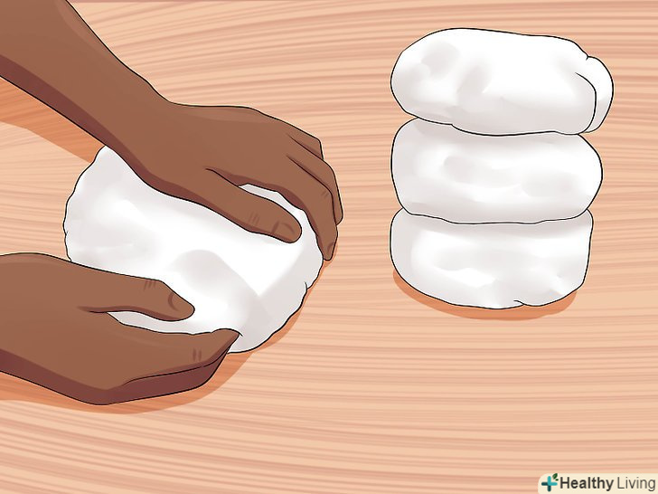 Приготуйте тісто для ліплення.якщо ви купили ваяльну глину або пластилін, пропустіть цей крок. Змішайте всі інгредієнти (борошно, сіль, виннокислий калій, масло і вода) до однорідної маси, без грудок. Потім перекладіть суміш в каструлю і нагрівайте на слабкому вогні, постійно помішуючи. В процесі нагріву тісто загусне. Коли тісто почне відставати від стінок каструлі, зніміть каструлю з конфорки і дайте охолонути до кімнатної температури.[3]- Остигле тісто необхідно замісити протягом 1-2 хвилин.