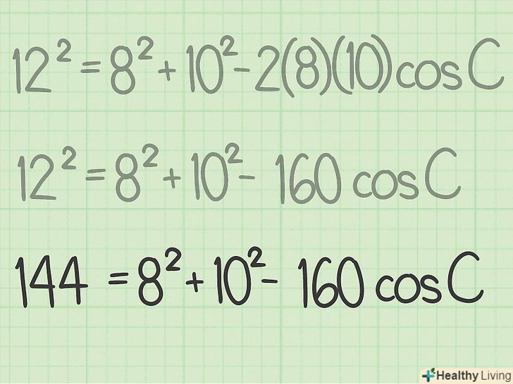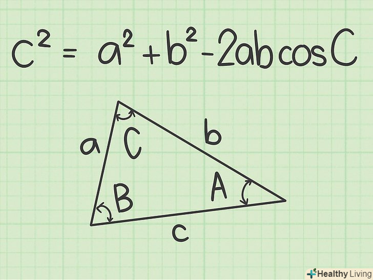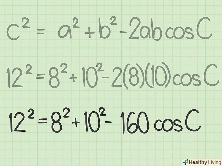 - Так як дані дві сторони і кут між ними, можна використовувати теорему косинусів. Запишіть формулу: