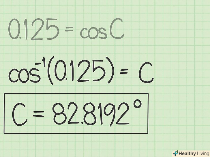 Обчисліть арккосинус. Так ви знайдете значення невідомого кута.[9] на калькуляторі функція арккосинуса позначається.