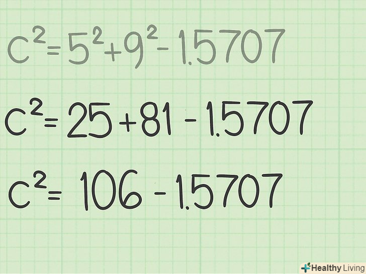 Знайдіть косинус відомого кута.зробіть це за допомогою калькулятора. Введіть значення кута, а потім натисніть кнопку. Якщо у вас немає наукового калькулятора, знайдіть онлайн-таблицю значень косинусів, наприклад, тут.[4] також в Яндексі можна ввести "косинус х градусів" (замість X підставте значення кута), і пошукова система відобразить косинус кута.