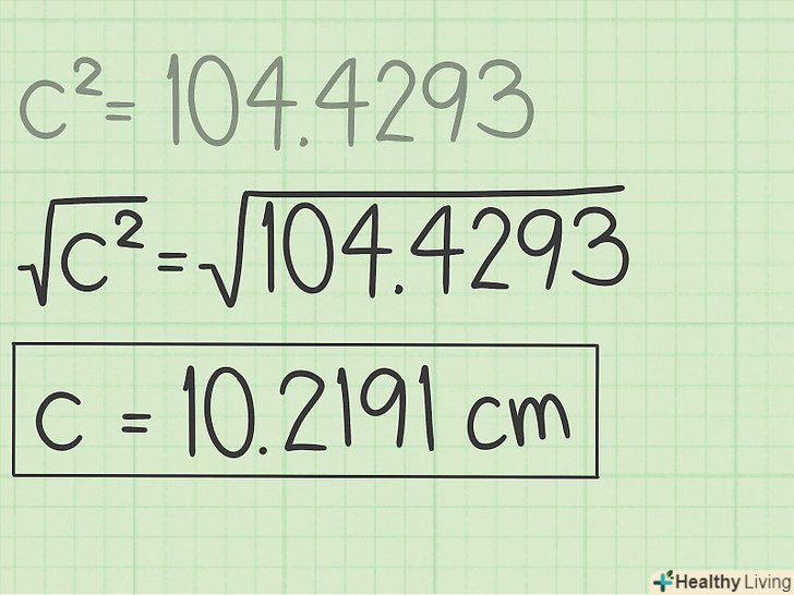 Витягніть квадратний корінь з отриманого значення.для цього скористайтеся калькулятором. Так ви знайдете невідому сторону.[5]- Наприклад: