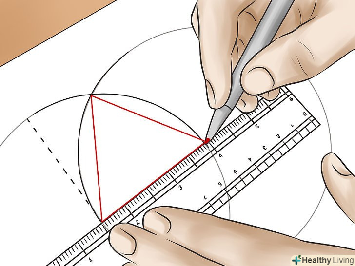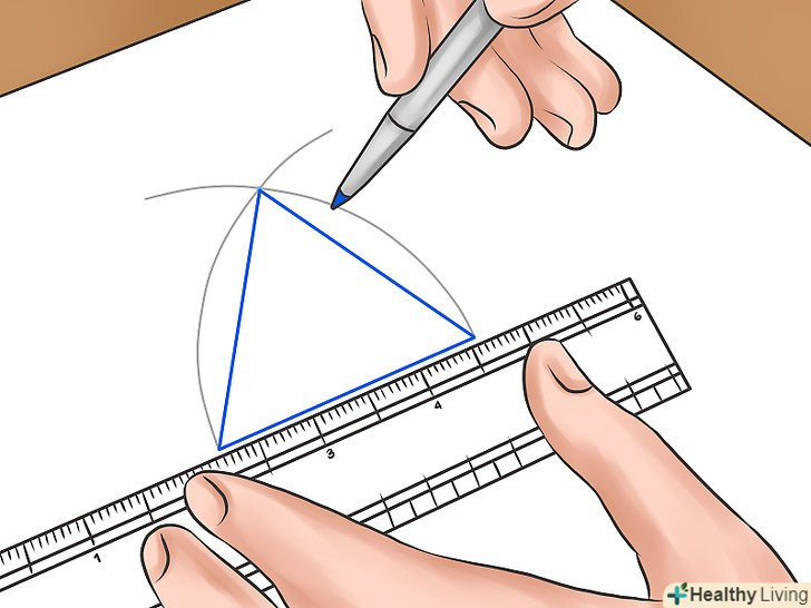 Намалюйте трикутник.для цього з'єднайте початкову точку першої сторони з точкою перетину дуг, а потім з'єднайте кінцеву точку першої сторони з точкою перетину дуг. Ви отримаєте рівносторонній трикутник.