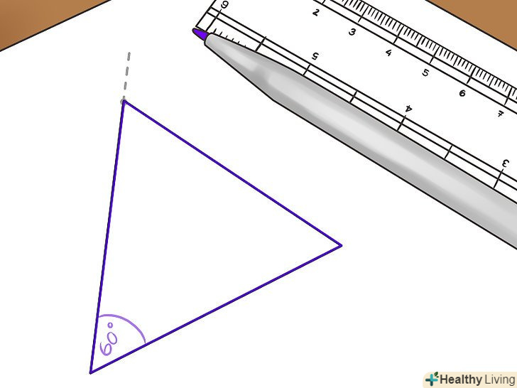 Намалюйте трикутник.за допомогою лінійки або прямої сторони транспортира намалюйте третю сторону трикутника. Для цього з'єднайте кінцеві точки першої і другої сторін. Ви отримаєте рівносторонній трикутник.