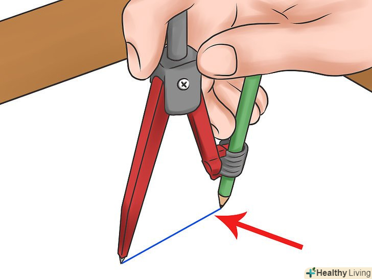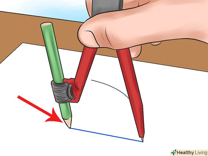 За допомогою циркуля проведіть дугу.у циркуль вставте олівець, переконавшись, що він заточений. Голку циркуля поставте в початкову точку першої сторони трикутника, а потім розсуньте циркуль так, щоб кінчик олівця в циркулі торкався кінцевої точки першої сторони трикутника.
