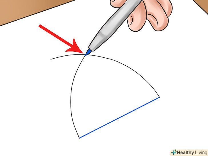 За допомогою круглого предмета проведіть дугу.покладіть круглий предмет на першу сторону трикутника так, щоб край предмета поєднувався з початковою точкою першої сторони. Щоб уникнути помилок, переконайтеся, що перша сторона проходить через центр круглого об'єкта. Олівцем намалюйте дугу над першою стороною трикутника, починаючи від початкової точки першої сторони.[5]